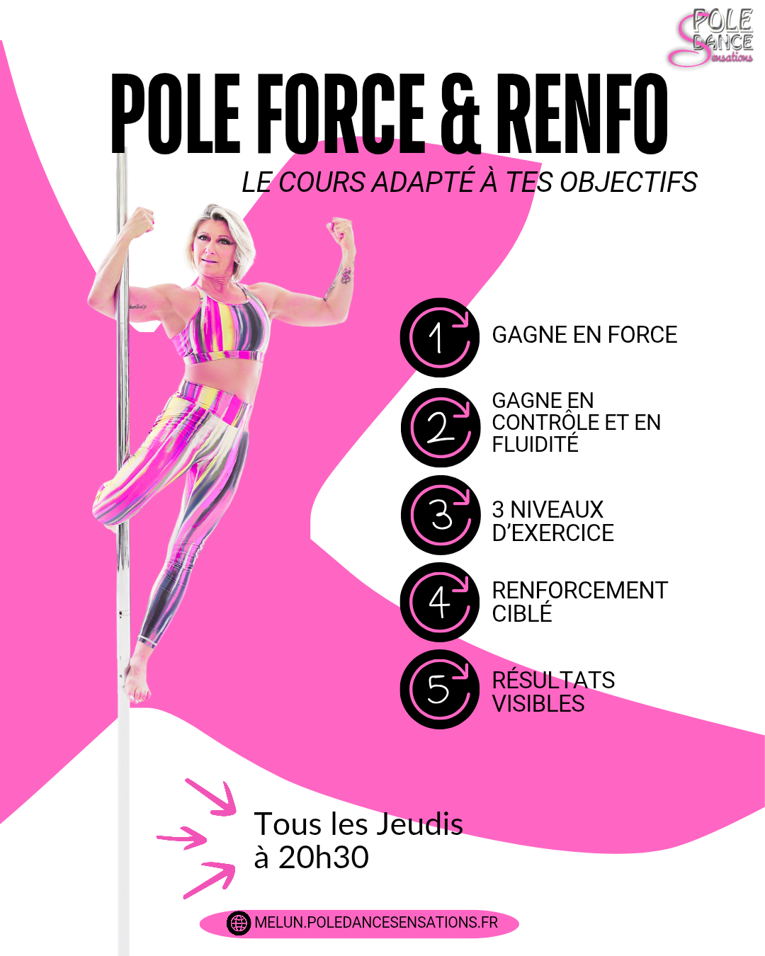 Pole Force & Renfo, c’est LE cours qui t’aide à progresser plus vite, en toute sécurité.